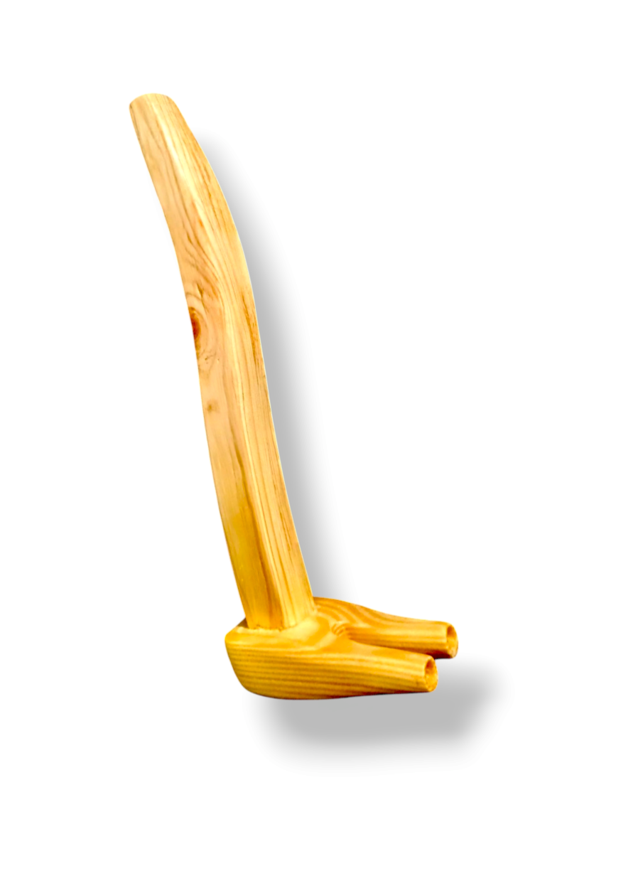 Instrumento ancestral tallado en “V” o “Y”, usado por chamanes de pueblos Huni Kuin y Yawanawa para administrar rapé medicinal en ambas fosas nasales al mismo tiempo, equilibrando el flujo energético entre los dos hemisferios cerebrales.